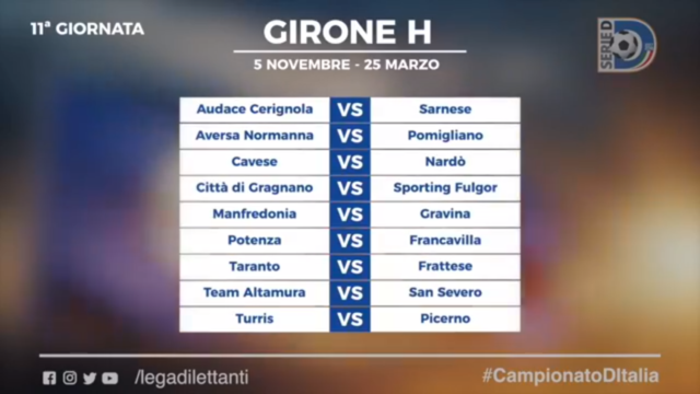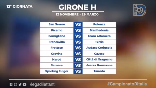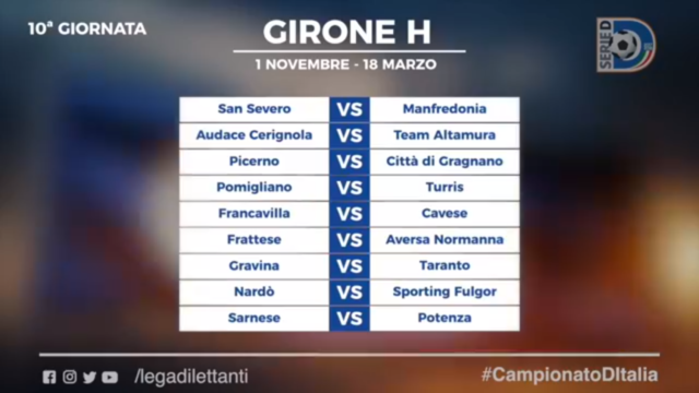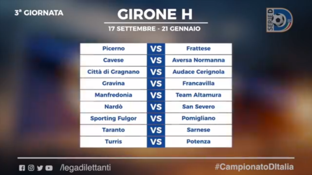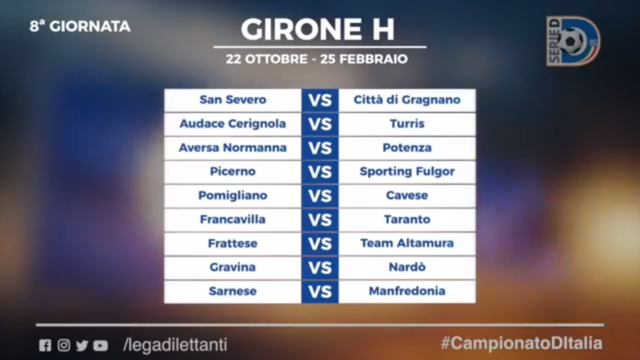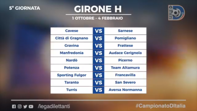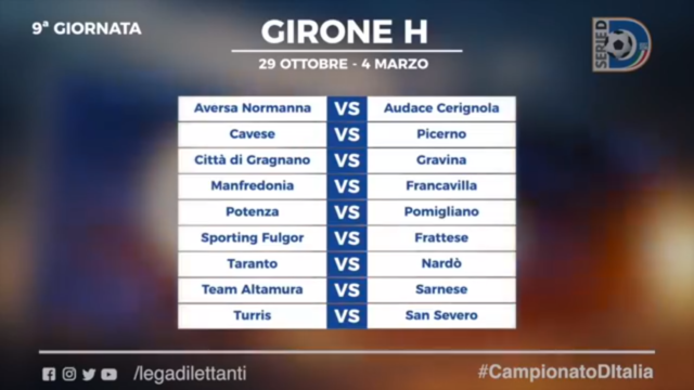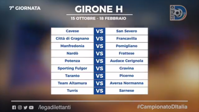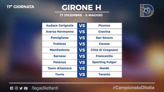 Soste: il /2017 e il /2017. La giornata di ritorno turno infrasettimanale giovedì /2017. Gare alle ore 15,00. Dal /2017 alle ore 14,30. Dal /2018 alle ore 15,00