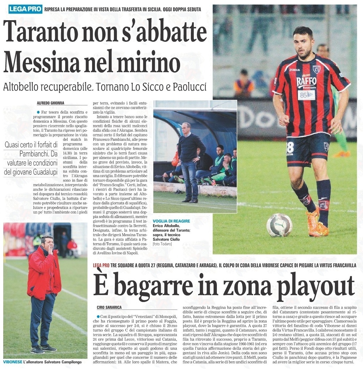 Il Taranto fa la sua chiamata. Ciullo costretto a rivedere la linea mediana nella nuova sfida salvezza