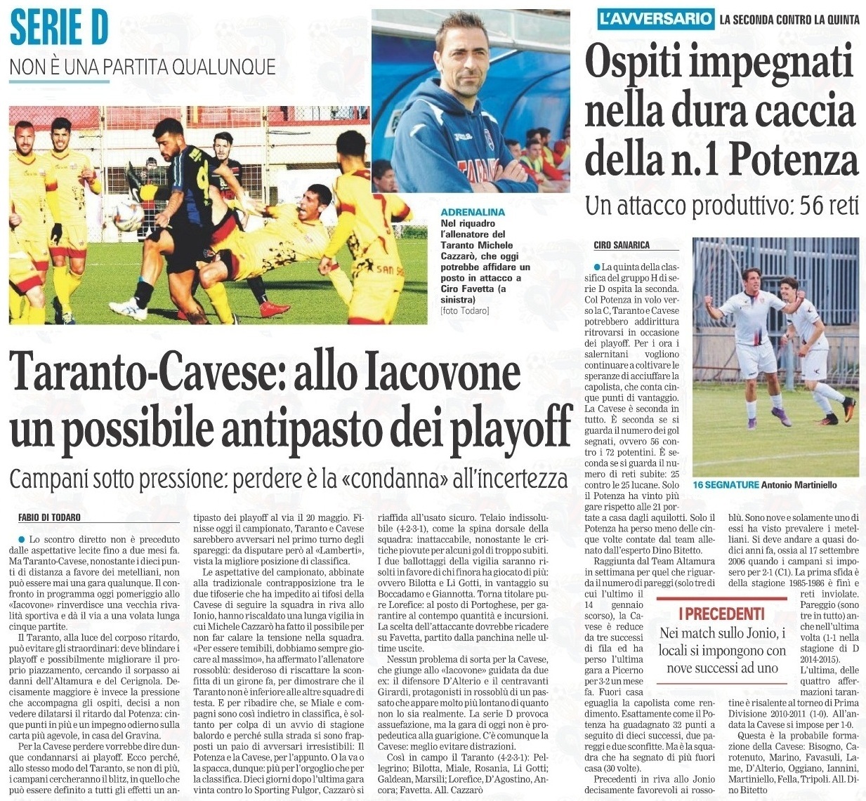 Sono molto contento della vittoria contro la Cavese non tanto per la pseudo rivalità in quanto non sono mai esistiti veramente ma per l'impegno messo dalla squadra nessuno escluso e sono super contento per la doppietta di Ancora un grande che si danna l'anima ogni partita , e sono super contento anche perché a breve come dichiarato dal DG Montella a breve verrà annunciato il nuovo DS .