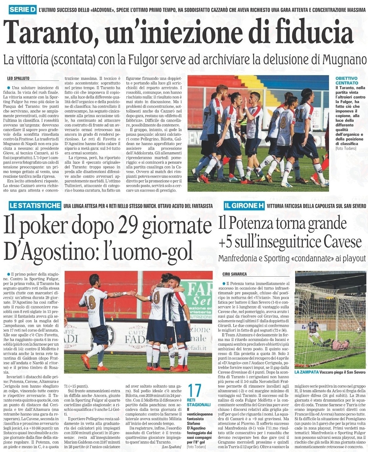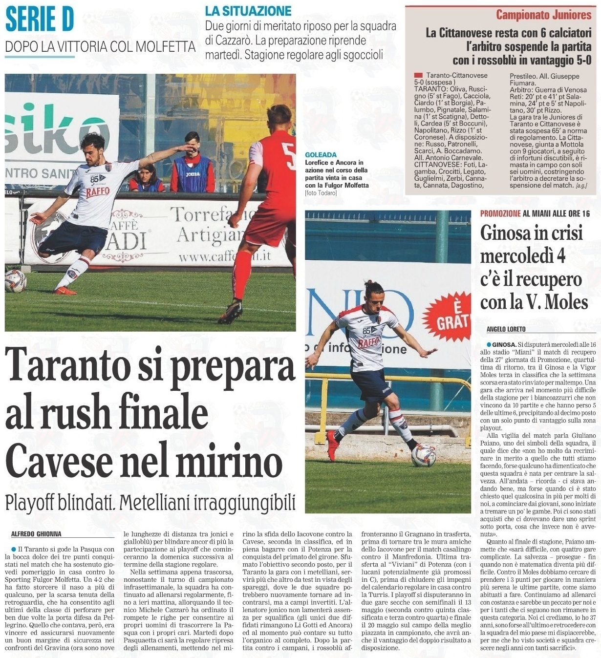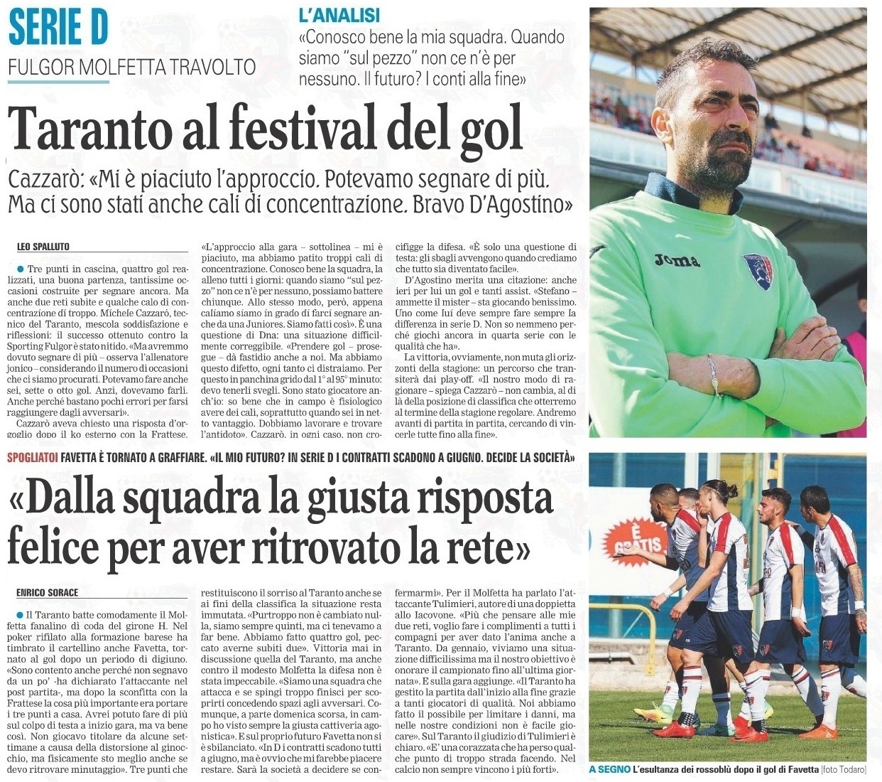 La lettera del Presidente non mi è piaciuta nel passaggio di riconferma in panca del mister. Già immagino il prossimo campionato con passaggio a vuoto nella prima parte, per poi rincorrere ed alla fine perdere il traguardo (film già visto troppe volte) non ci siamo proprio. Credo che alla fine non sia una mossa vincente per riavvicinare la tifoseria tarantina.
